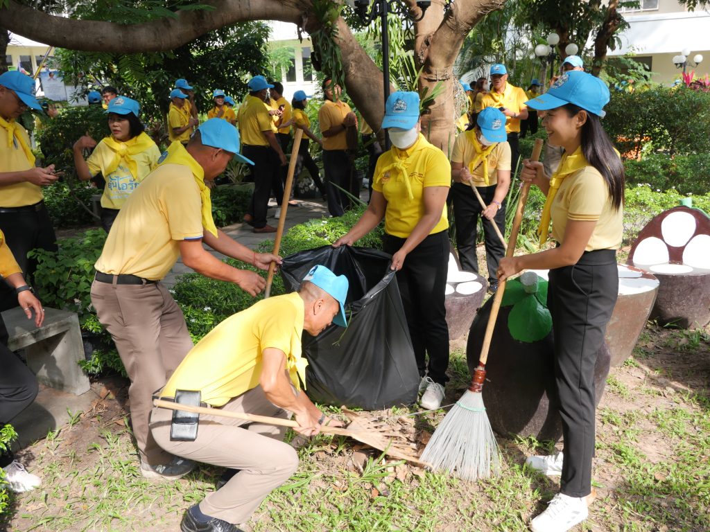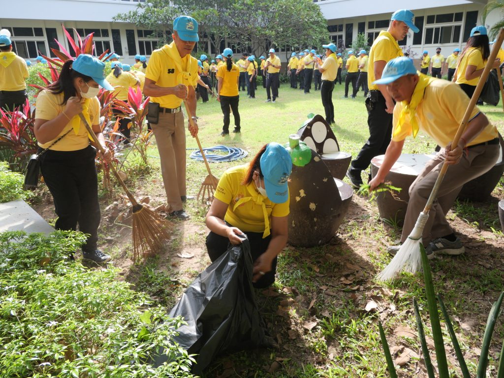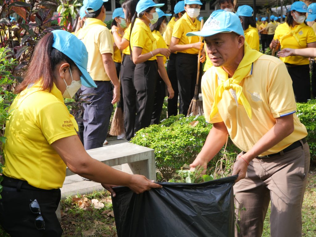 วันที่ 18 ต.ค.66เวลา 8.30 น. พล.ต.ต.ดิเรก จิตอร่าม ผบก.ภ.จว.มหาสารคาม พร้อมด้วย พ.ต.ท.จำรัส เกตุแสง สว.ฝอ.ฯ และข้าราชการตำรวจในสังกัดฯ ร่วมจัดกิจกรรมจิตอาสาพัฒนาปรับปรุงภูมิทัศน์ ทำความสะอาด สวนจตุรมุขด้านในศูนย์ราชการจังหวัดมหาสารคาม ในโอกาสวันสำคัญของชาติไทย เนื่องในวันคล้ายวันพระราชสมภพพระบาทสมเด็จพระปรเมนทรมหามงกุฎ พระจอมเกล้าเจ้าอยู่หัว ณ อาคารศูนย์ราชการ จังหวัดมหาสารคาม (ศาลากลางจังหวัดมหาสารคาม) โดยมี นายวิบูลย์ แววบัณฑิต ผู้ว่าราชการจังหวัดมหาสารคาม เป็นประธานฯ