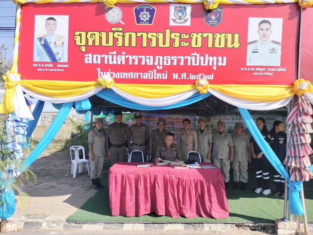 พ.ต.ท.ชาญยุททธ แก้วจันดา สวป.ฯ พร้อม เจ้าหน้าที่ตำรวจ , เจ้าหน้าที่อบต.หนองแสง , ผู้นำชุมชน , อปพร กู้ภัย เจ้าหน้าที่ รพ.วาปีปทุม อยู่ประจำจุดบริการประชาชน ได้กำชับการให้บริการประชาชนผู้สัญจรไปมาช่วงเทศกาลปีใหม่ 2567 อย่างเข้มแข็งและบริการประชาชนด้วยความสุภาพ