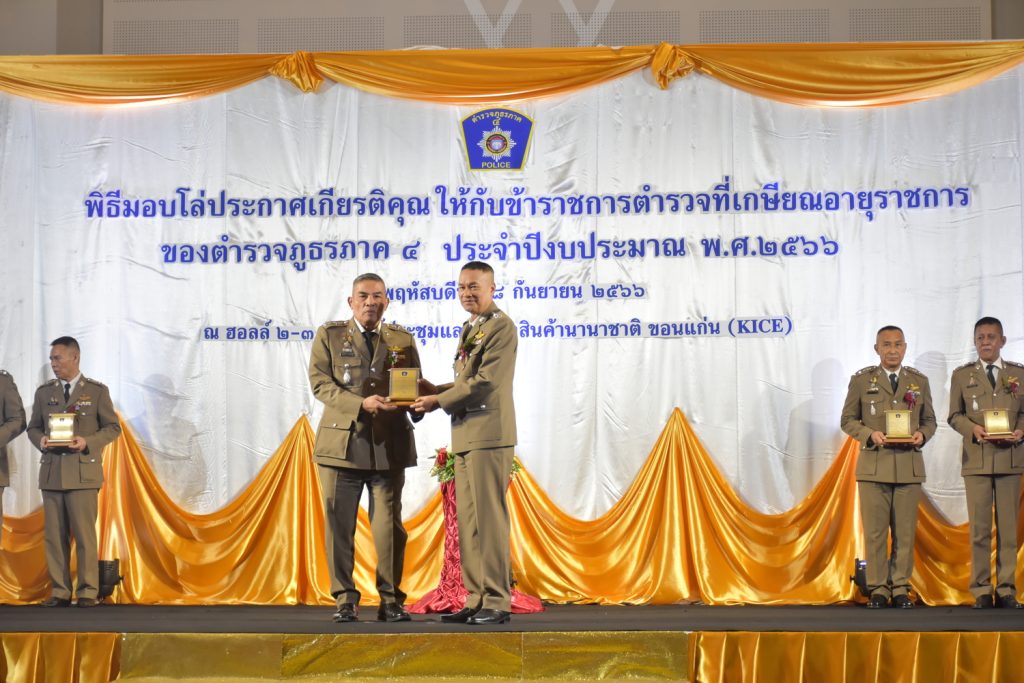ได้เดินทางมาร่วมพิธีโครงการสัมมนาเชิงปฏิบัติการเพื่อแลกเปลี่ยนความรู้และประสบการณ์ในการปฏิบัติหน้าที่ระหว่างผู้เกษียณอายุราชการกับข้าราชการตำรวจในสังกัดตำรวจภูธรภาค 4 และพิธีมอบโล่ประกาศเกียรติคุณแก่ข้าราชการตำรวจที่เกษียณอายุราชการ ประจำปีงบประมาณ พ.ศ.2566 ผู้เข้าร่วมสัมมนาประกอบไปด้วย ผู้เกษียณอายุราชการระดับ พ.ต.อ.ขึ้นไป,อดีตผู้บังคับบัญชา,แขกผู้มีเกียรติ จากนั้นมีการแสดงดนตรีและศิลปะวัฒนธรรมให้รับชม บรรยากาศภายในงานเป็นไปด้วยความเรียบร้อย