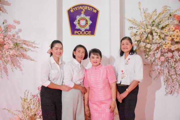 พล.ต.ต.ดิเรก จิตอร่าม ผบก.ภ.จว.มหาสารคาม,คุณสิริรัช จิตอร่าม ภริยา/ประธานแม่บ้านตำรวจภูธรจังหวัดมหาสารคาม พร้อมด้วย หน.สภ.ในสังกัด,พ.ต.ท.หญิง พรยุพา โนนตาไทย รอง ผกก.ฯ ปรก.ภ.จว.มหาสารคาม,พ.ต.ท.หญิง รัชนี วิริยะ สว.ฝอ.ฯ และคณะแม่บ้านตำรวจฯ